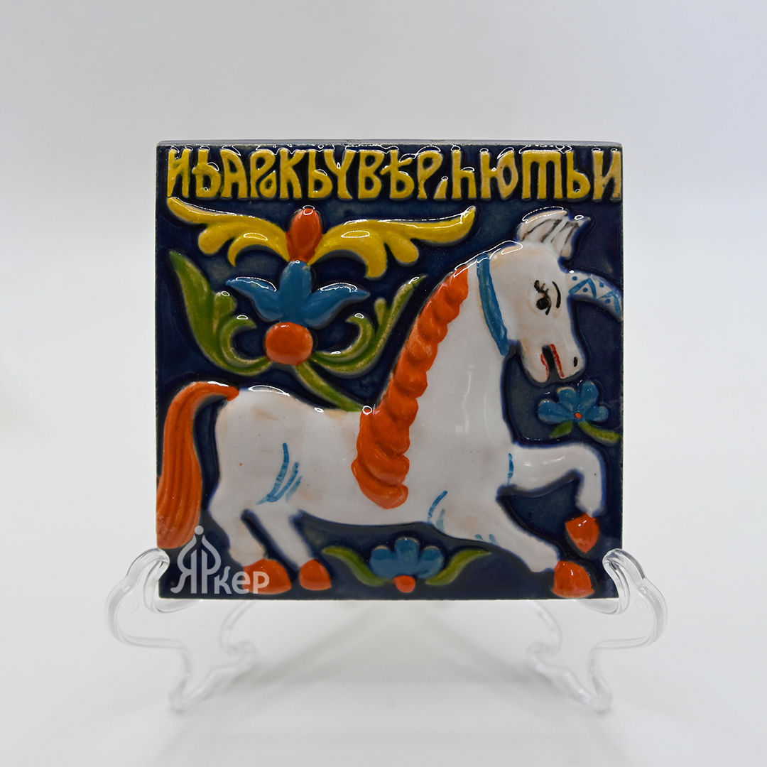 Изразец "Единорог с надписью" цветной