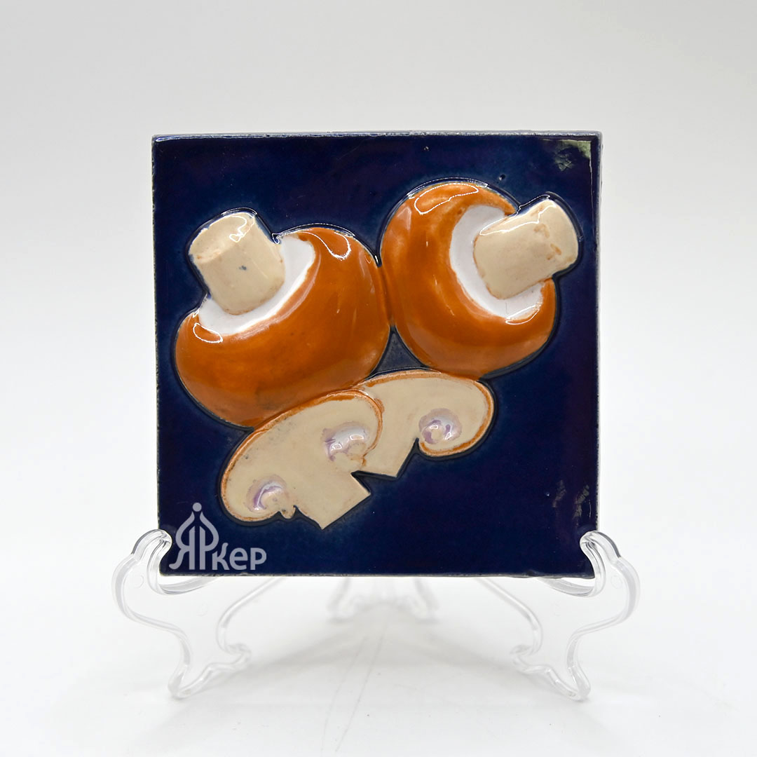 Изразец "Грибы шампиньоны" цветной